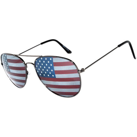 Aviator Sunglasses - Gun Frame / American Flag Lens