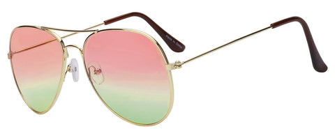 Aviator Sunglasses - Gold Frame / Red Green Two-tone Lens