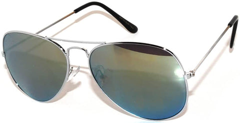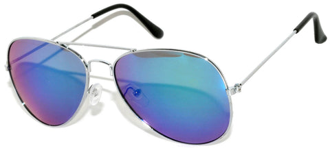 Aviator Sunglasses - Silver Frame / Bluegreen Mirror Lens