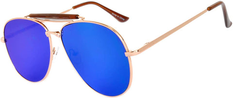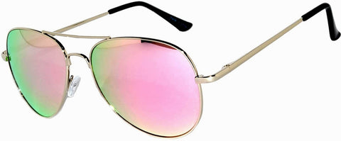 Aviator Sunglasses - Gold Frame / Rose Mirror Lens / Spring Hinges