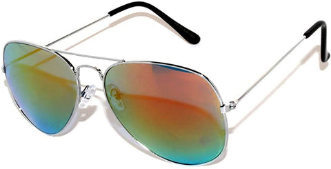 Aviator Sunglasses - Silver Frame / Yellow Mirror Lens