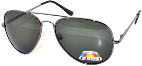 Aviator Sunglasses - Gun Color Frame / Smoke Polarized Lens / Spring Hinges
