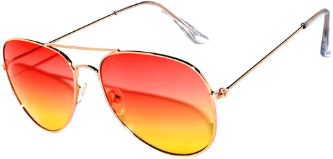 Aviator Sunglasses - Gold Frame / Red Yellow Two-tone Lens