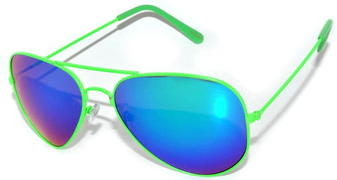 Aviator Sunglasses - Green Frame / Blue Mirror Lens