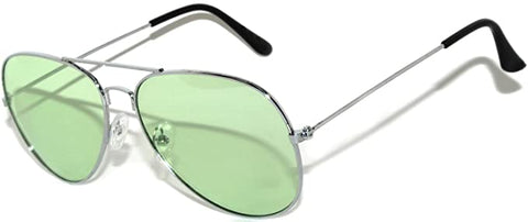 Aviator Sunglasses - Green Frame / Blue Mirror Lens / Spring Hinges
