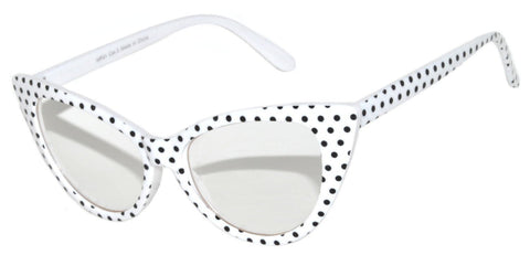 Cat Eye Sunglasses - White with Black Polka Dot Frame / Clear Lens