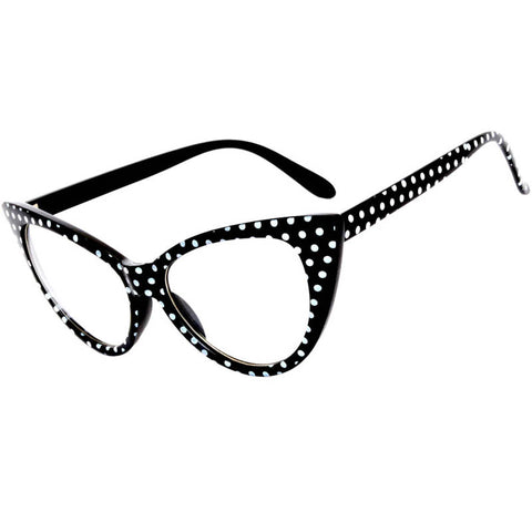 Cat Eye Sunglasses - Black with White Polka Dot Frame / Clear Lens