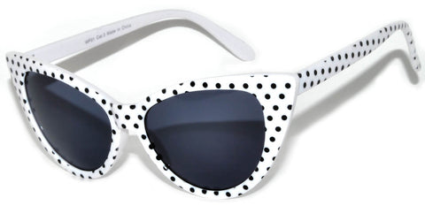 Cat Eye Sunglasses - White with Black Polka Dot Frame / Smoke Lens