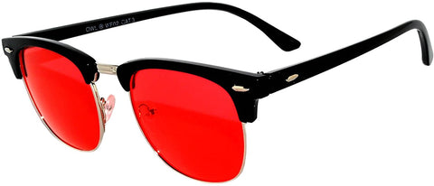Half Frame Sunglasses / Black Silver Frame / Red Lens