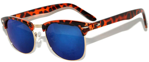 Half Frame Sunglasses / Leopard Gold Frame / Blue Mirror Lens