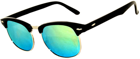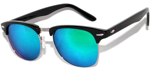Half Frame Sunglasses / Black Silver Frame / Bluegreen Mirror Lens