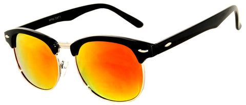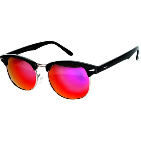 Half Frame Sunglasses / Black Silver Frame / Red Mirror Lens