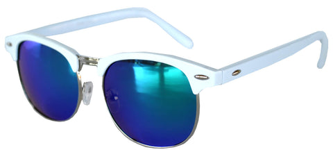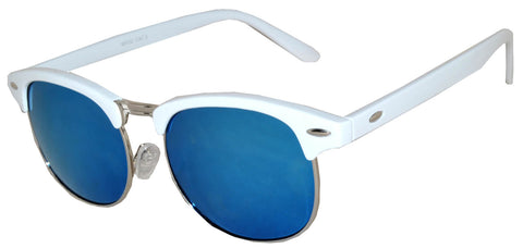 Half Frame Sunglasses / White Silver Frame / Blue Mirror Lens