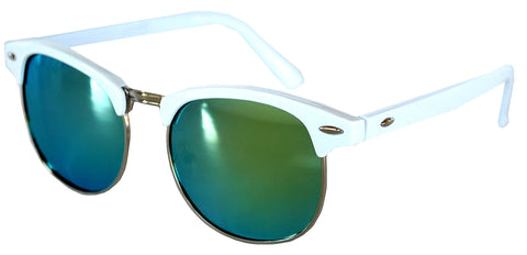 Half Frame Sunglasses / White Silver Frame / Bluegreen Mirror Lens