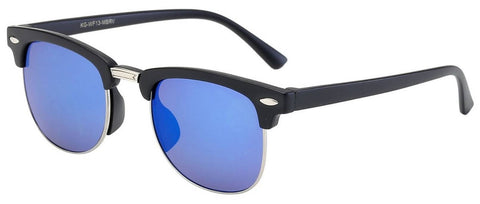 Semi-Rimless Kids Sunglasses - Black Frame / Blue Mirror Lens