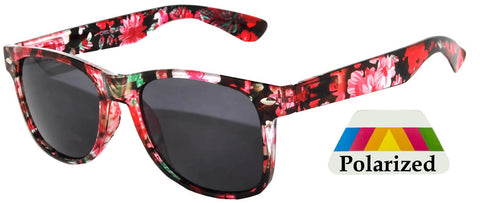 Retro Kids Rectangle Sunglasses - Flower Red Frame / Smoke Polarized Lens