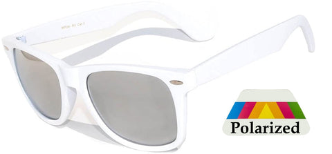 Retro Kids Rectangle Sunglasses - Matte-White Frame / Mirror Polarized Lens