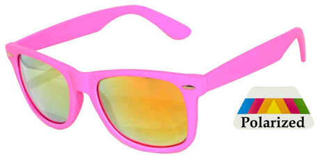 Retro Kids Rectangle Sunglasses - Matte-Pink Frame / Mirror Polarized Lens