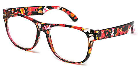 Kids Retro Sunglasses - Flower Red Frame / Clear Lens