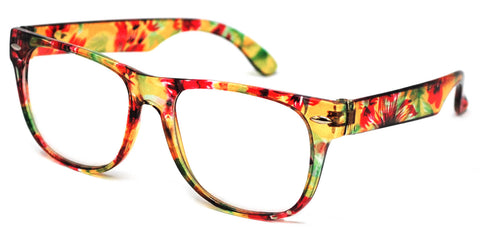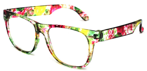 Kids Retro Sunglasses - Green Flower Frame / Clear Lens