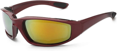 Motorcycle Sunglasses - Wine Red Frame / Red Mirror Lens