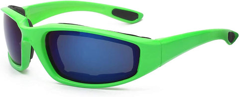 Motorcycle Sunglasses - Green Frame / Blue Mirror Lens