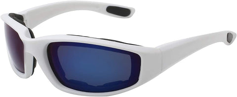 Motorcycle Sunglasses - White Frame / Blue Mirror Lens