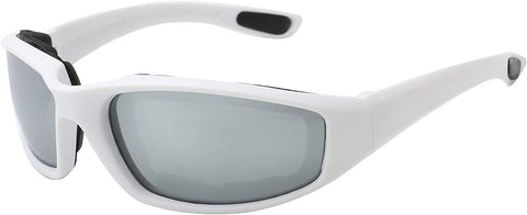 Motorcycle Sunglasses - White Frame / Silver Mirror Lens