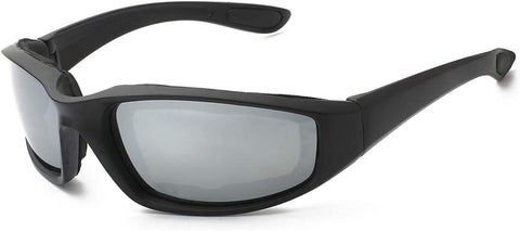 Motorcycle Sunglasses - Black Frame / Silver Mirror Lens
