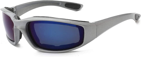 Motorcycle Sunglasses - Silver Frame / Blue Mirror Lens