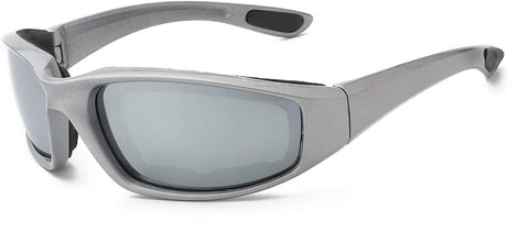 Motorcycle Sunglasses - Silver Frame / Silver Mirror Lens