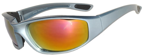 Motorcycle Sunglasses - Silver Frame / Red Mirror Lens
