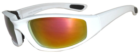 Motorcycle Sunglasses - White Frame / Red Mirror Lens