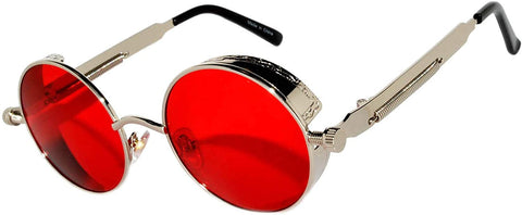 Steampunk Sunglasses - Silver Frame - Sea Red Lens