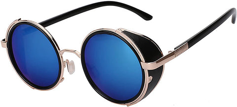 Steampunk Sunglasses / Black Frame / Blue Mirror Lens 003