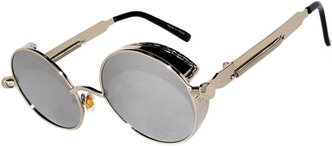 Steampunk Sunglasses - Silver Frame - Silver Mirror Lens