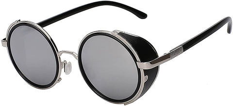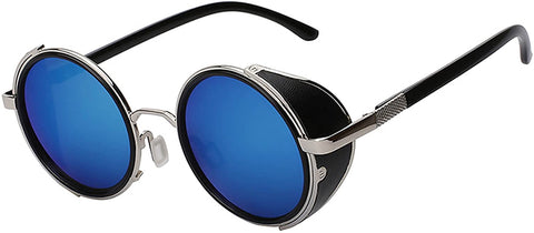 Steampunk Sunglasses - Silver Frame - Blueice Mirror Lens