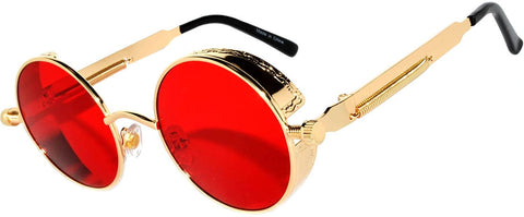 Steampunk Sunglasses - Gold Frame - Sea Red Lens