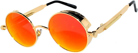Steampunk Sunglasses - Gold Frame - OrangeRed Mirror Lens