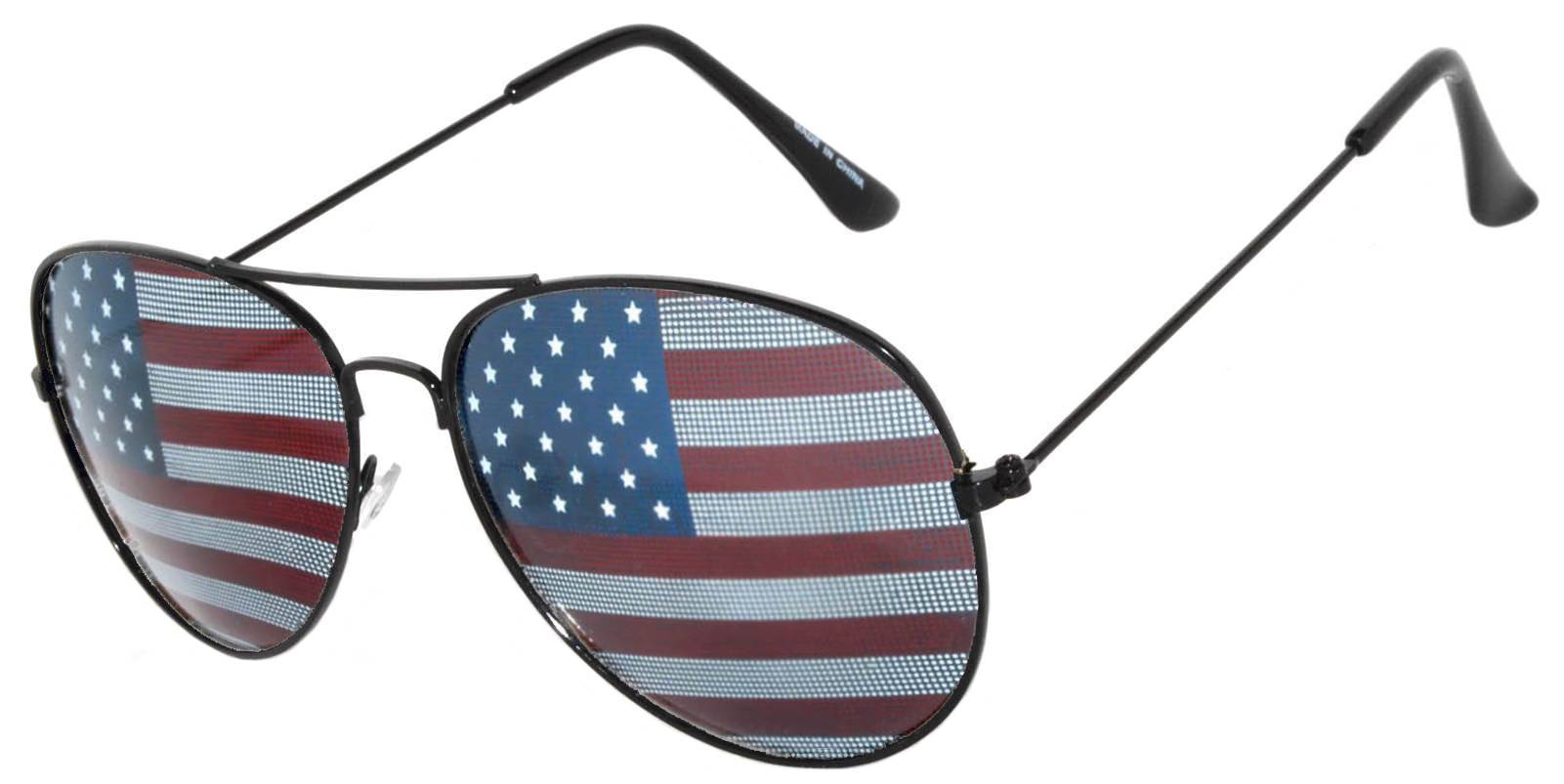 Aviator Sunglasses - Black Frame / American Flag Lens