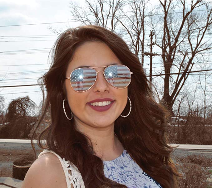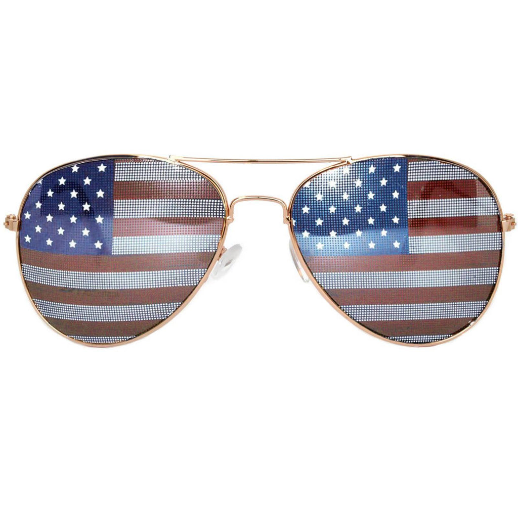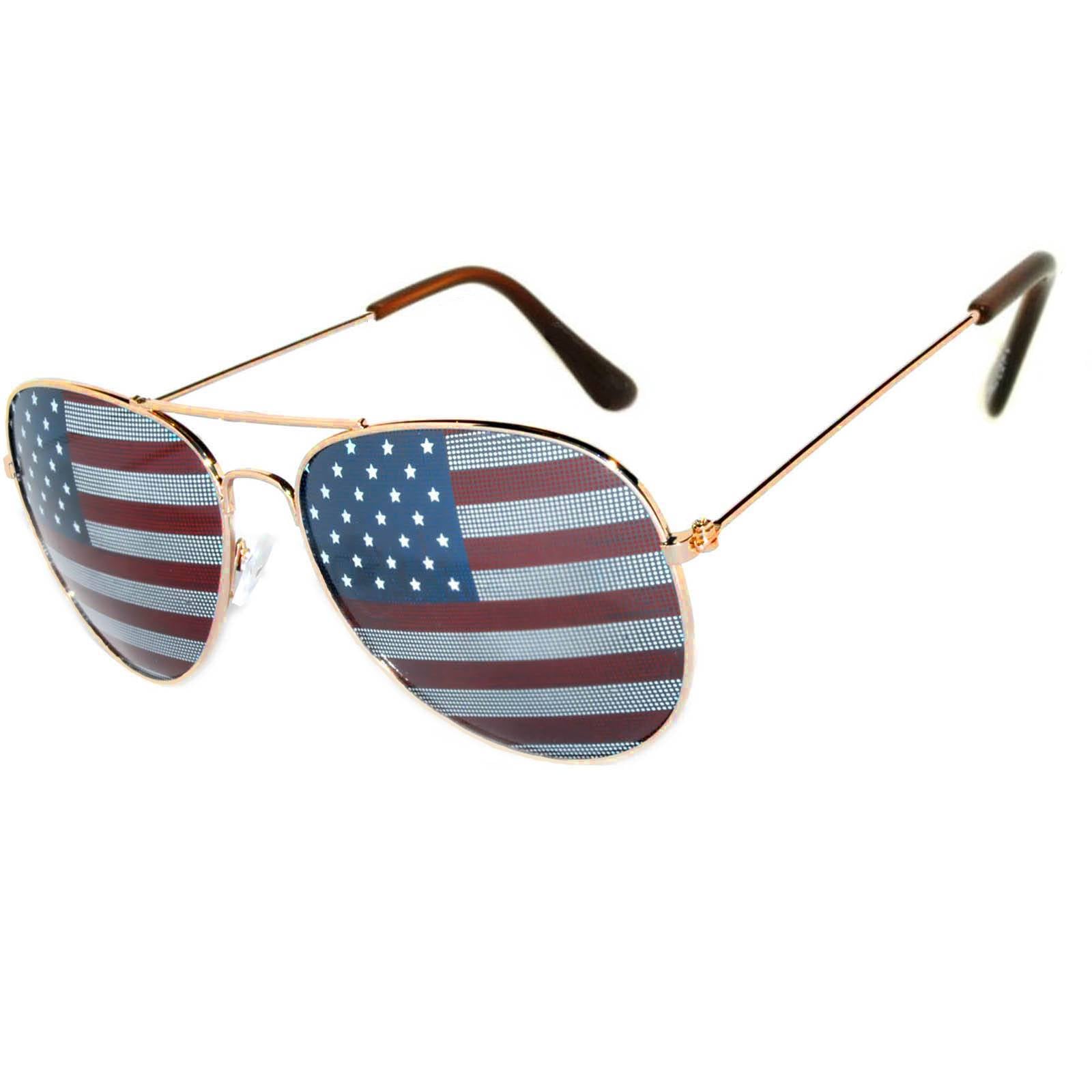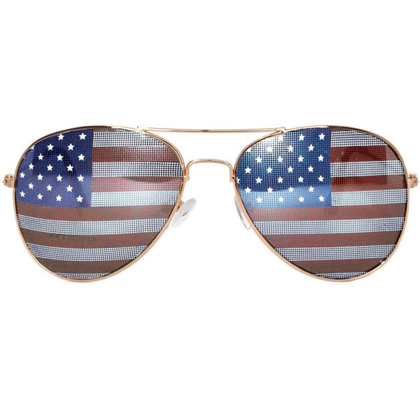 Aviator Sunglasses - Gold Frame / American Flag Lens