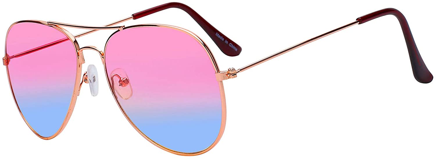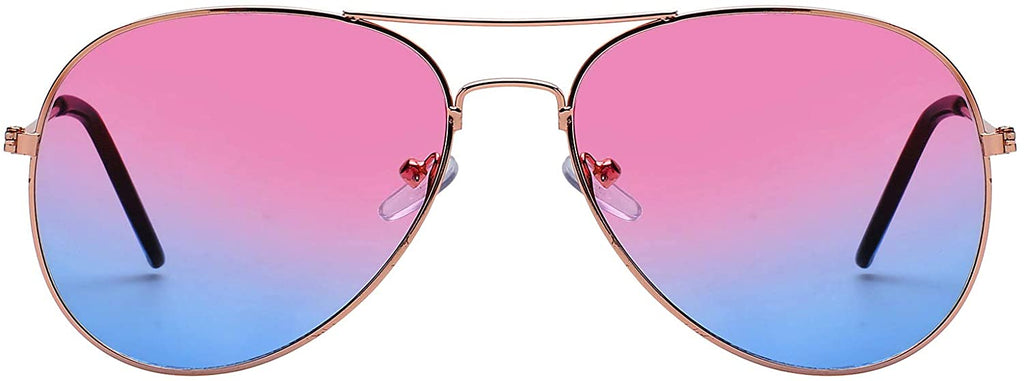 Aviator Sunglasses - Gold Frame / Pink Blue Two-tone Lens