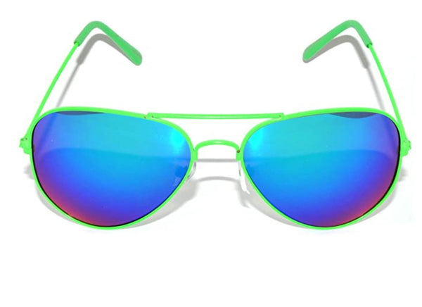 Aviator Sunglasses - Green Frame / Blue Mirror Lens