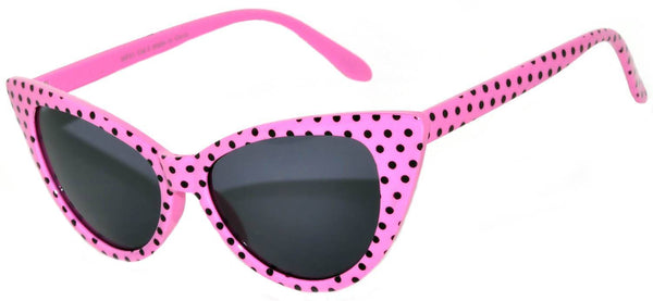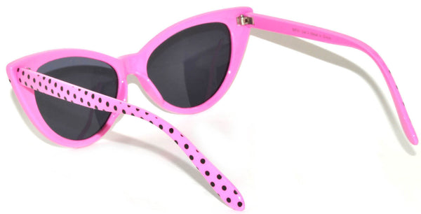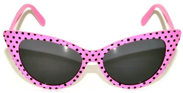 Cat Eye Sunglasses - Pink Black Polka Dot Frame / Smoke Lens