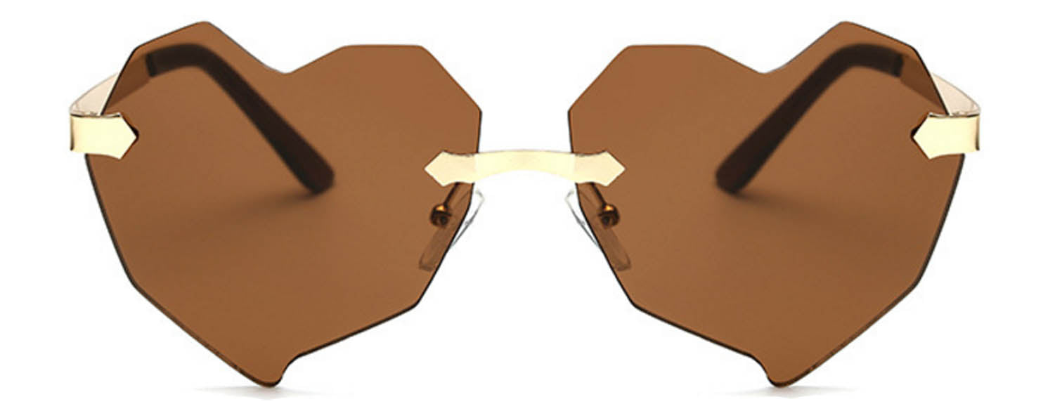 Designer Heart Sunglasses - Gold Frame / Brown Lens