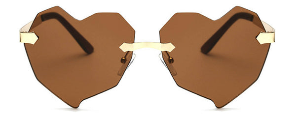- HEART-SHAPED RIMLESS FRAME: Stand out from the crowd with these charming heart shaped sunglasses. The frameless design adds a touch of elegance, while the heart design brings a playful and lovable vibe to your look.
