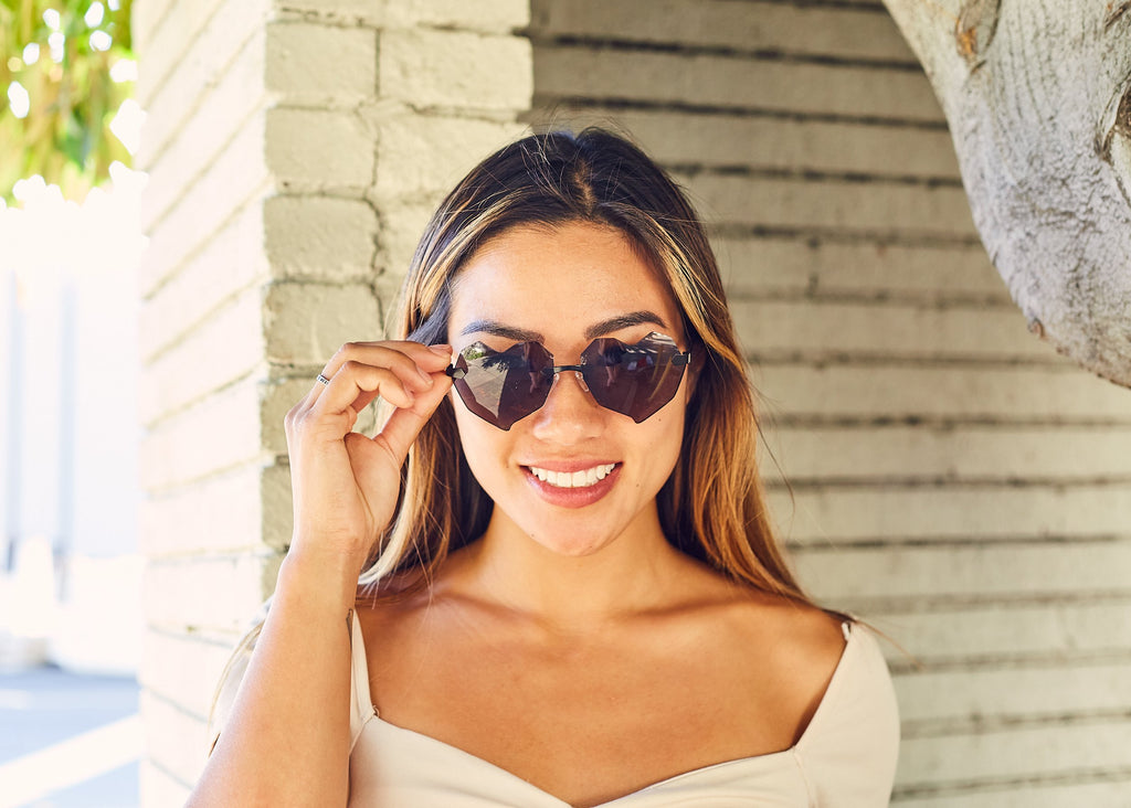 - COMFORTABLE & DURABLE: The heart-shaped rimless frame is not only stylish but also lightweight and durable. The carefully crafted design ensures a comfortable fit, so you can wear these fashion sunglasses all day without any discomfort.