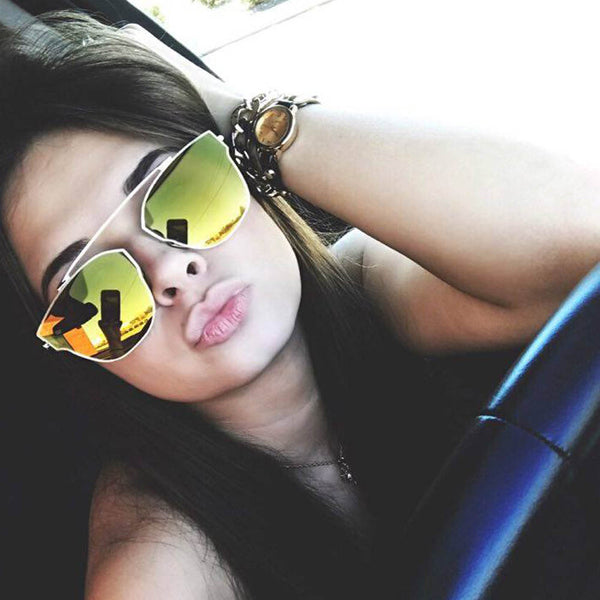 Designer Sunglasses - Gold Frame / Fire Mirror Lens
