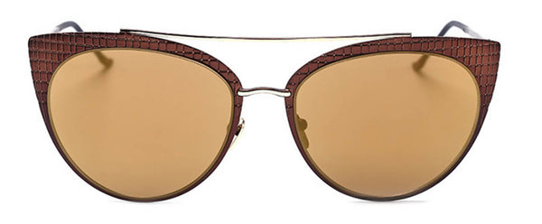 Designer Cat Eye Sunglasses - Gold Frame / Brown Mirror Lens
