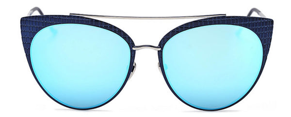 Designer Cat Eye Sunglasses - Silver Frame / Blue Mirror Lens